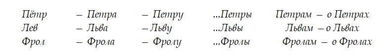 и) и входит таким образом в основу слова. В данных падежах эти имена не имеют окончаний.