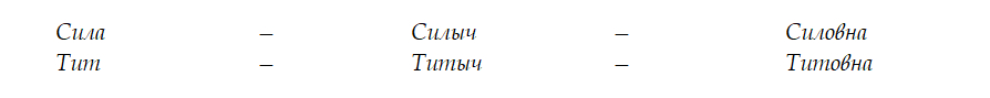 В скобках даются суффиксы мужских имен и женских отчеств. Например, Авдей — Авдеевич, Авдеевна и т. п.