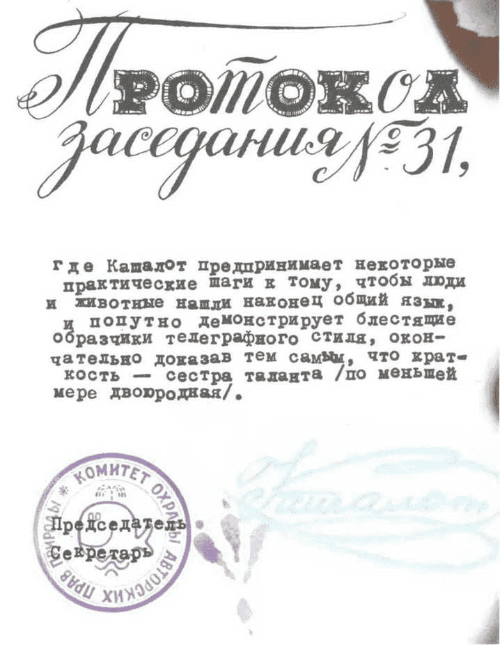 Кашалот. Спасибо, Гепард, вы меня успокоили. Открываю очередное заседание Комитета охраны авторских прав природы!