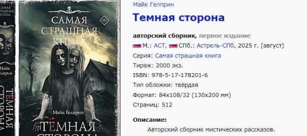 Август 2025 – «АСТ» выпускает книгу Гелприна «Тёмная сторона», тираж 2000 экз. Что будет – поживём и увидим.