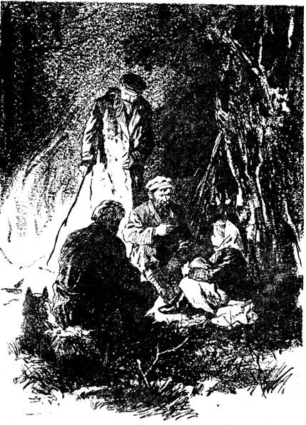 Мы засмотрелись на все это и совсем забыли о том, что находимся в плену! Но вдруг кто-то тихонько свистнул около землянки. Смотрю – Пятница! Он делает нам знаки, чтобы мы шли за ним. Пылали костры, и было так светло, что казалось, нас обязательно заметят.