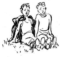 Мы с Толей прошмыгнули мимо пирующих и завернули за землянку. Здесь уже ждал нас Пятница. Он опустился на корточки и пополз прямо по-пластунски. Мы за ним. Так ползли до самой реки. А тут приподняли головы и прислушались. У костров продолжалось все то же веселье.