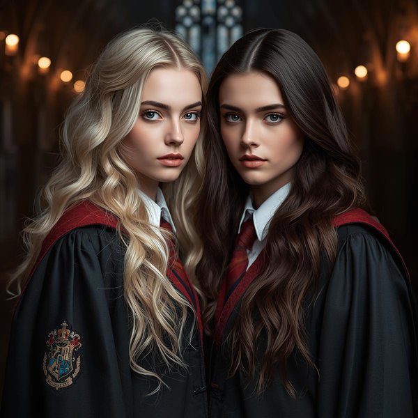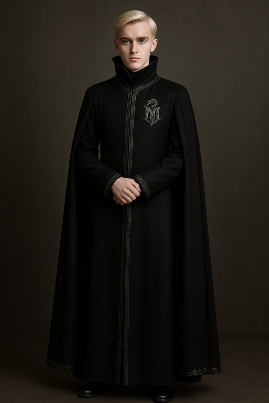 Все обернулись почти одновременно. В почётной ложе, на мягких креслах, сидели Малфои. Люциус — безупречно собранный, с идеально уложенными светлыми волосами и холодным прищуром; во всём его облике читалась ледяная вежливость. Рядом с ним — Нарцисса, утончённая и строгая, в элегантной мантии из тёмного шёлка, словно сама статуя аристократического достоинства. Чуть поодаль расположился Драко, глядевший на них с тем же самодовольным выражением, каким славился его отец.