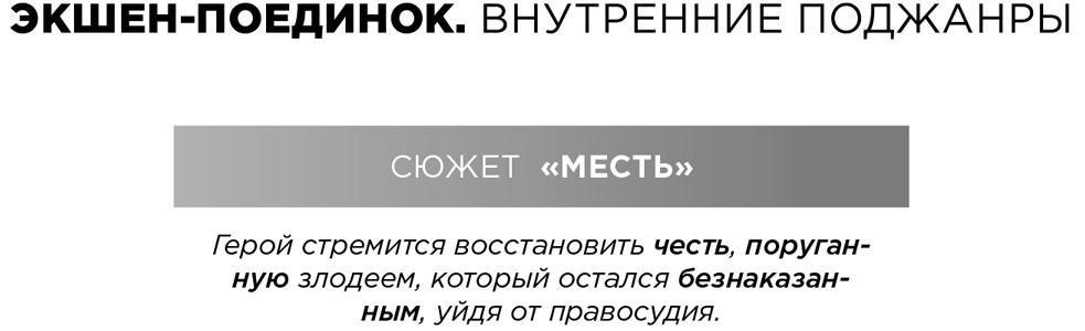 Мы разобрали четыре поджанра экшена и шестнадцать внутренних поджанров, отмечая использованные авторами знакомые черты жанра, но при этом мы понимаем, что эти условности, конвенции не аксиома. Зритель и читатель любит условности, но не требует их непременного наличия. Чтобы экшен получался живым и сильным, форму освоить необходимо, но затем придется импровизировать и придумывать что-то с чистого листа для будущих поклонников. Поэтому давайте претворять в жизнь свою любовь к экшену, руководствуясь чувством творческой свободы.
