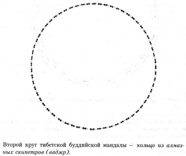 На протяжении многих веков буддийские монахи в Тибете создавали мандалы — произведения искусства, тканые узоры и орнаменты из цветного песка. То же самое делали в Новом Свете шаманы индейцев навахо. Тибетцы используют мандалы в качестве вспомогательных средств для медитации: с их помощью они концентрируют свой разум и мысленно проходят, шаг за шагом, через множество измерений пространства, времени и сознания к свободе чистого «бытия», заключенного в сердцевине всех вещей. Такое путешествие, независимо от того, как часто ты его повторяешь, всегда приводит к глубоким внутренним измерениям, одаряет новыми прозрениями своего «я» и сути жизни…