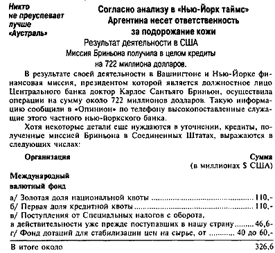 Аргентина. Аргентинское правительство собирается закупить 14 французских «Миражей». Буэнос-Айрес (АП). Аргентинское правительство готово одобрить контракт по приобретению четырнадцати истребителей «Мираж-ІІІ», заключенный с компанией «Дассо» на сумму 49 миллионов долларов (269,5 миллионов франков).